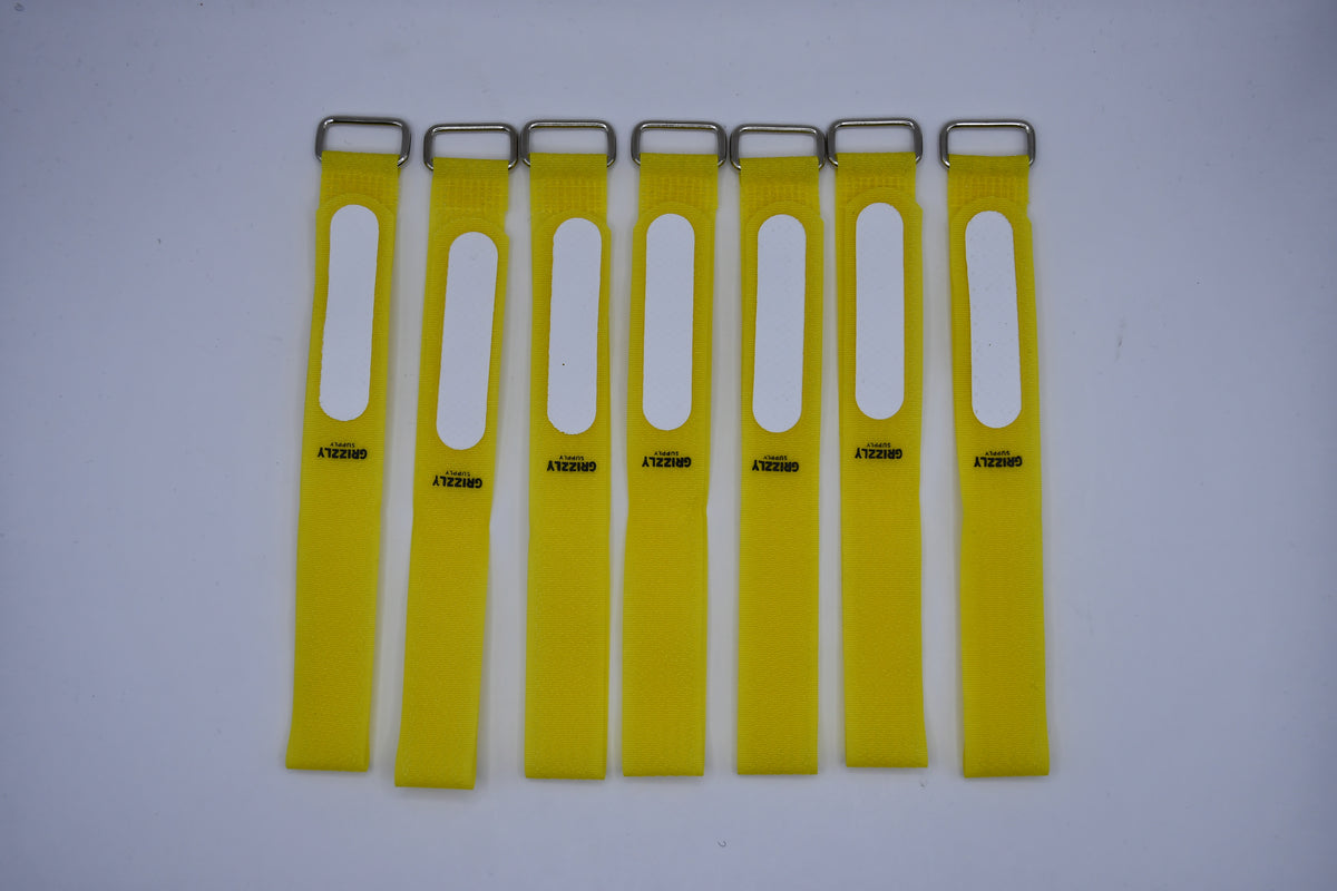 Grizzly Supply 12" Yellow Hook and Loop Cinch Straps – Pack of 8